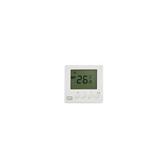 Termostato electrónico frío/calor, con pantalla digital donde podemos ver la temperatura actual, el funcionamiento y cambio de frío/calor y la temperatura demandada. Permite además ajustar otros parámetros como la calibración, la histéresis, etc. Montaje sobre caja de mecanismos y alimentado a 230V desde la placa eletrónica mediante 3 hilos. Dimensiones: 86x86x16 mm Campo de regulación: 5 a 30°C